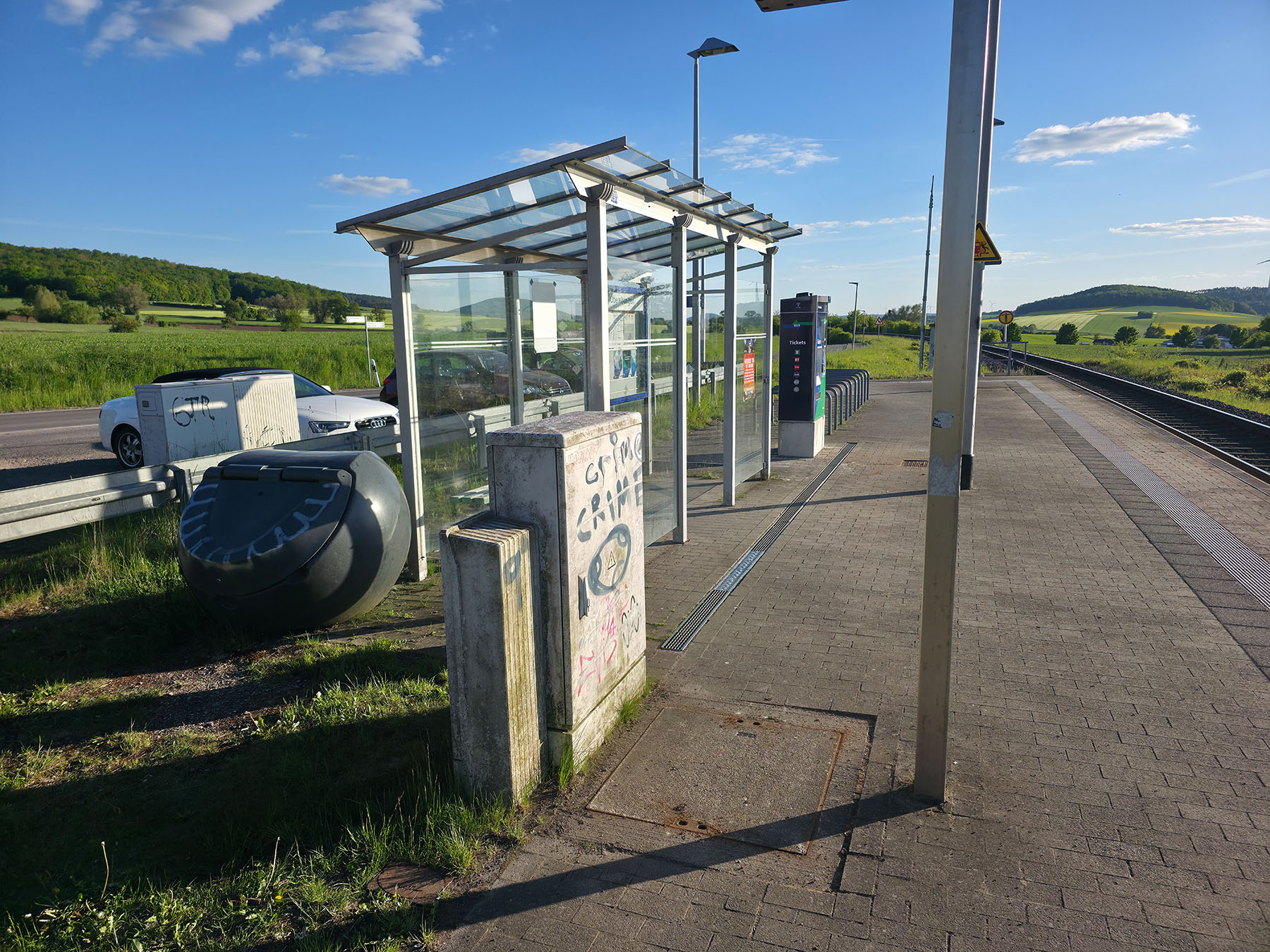 Bahnhof, Bushaltestelle, Parkplätze, RT4, Ticketautomat, Unterstand